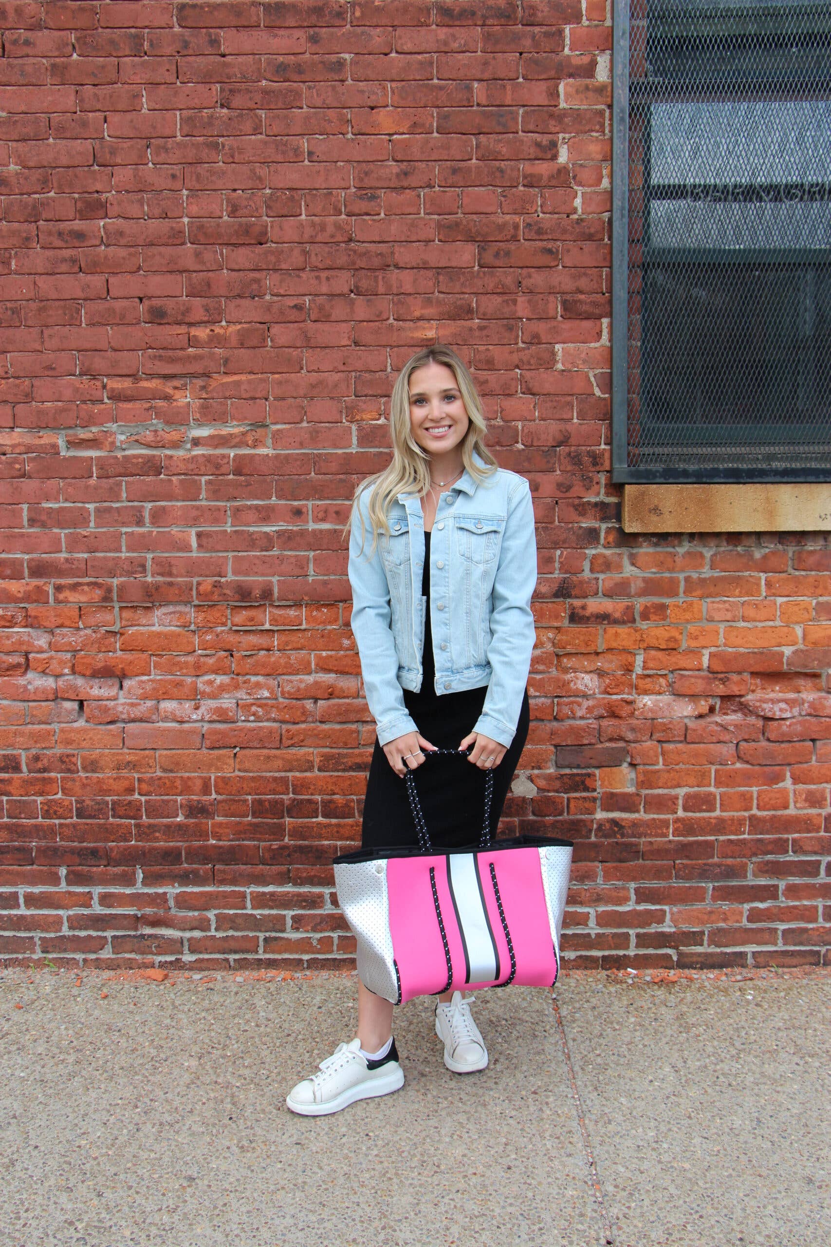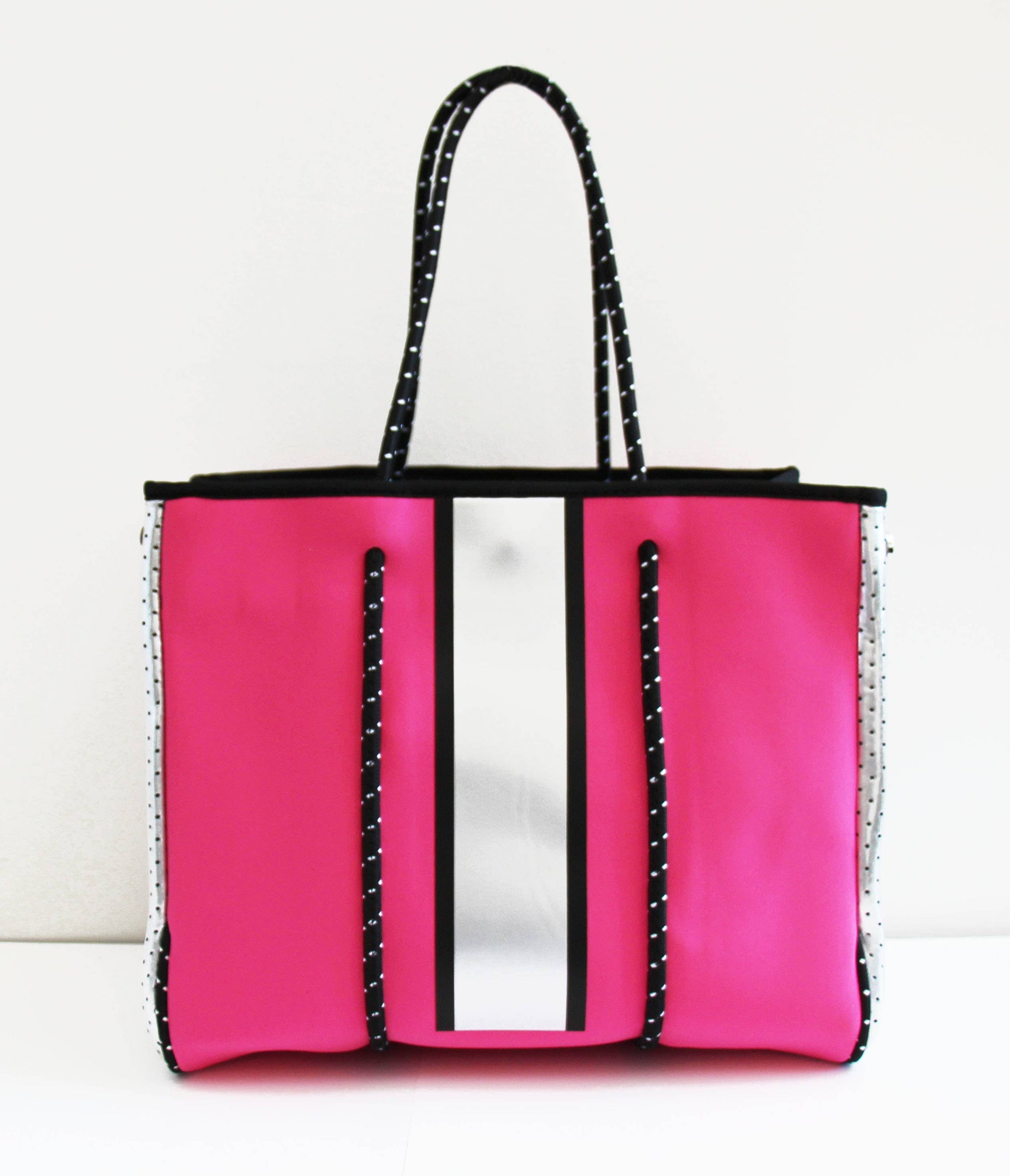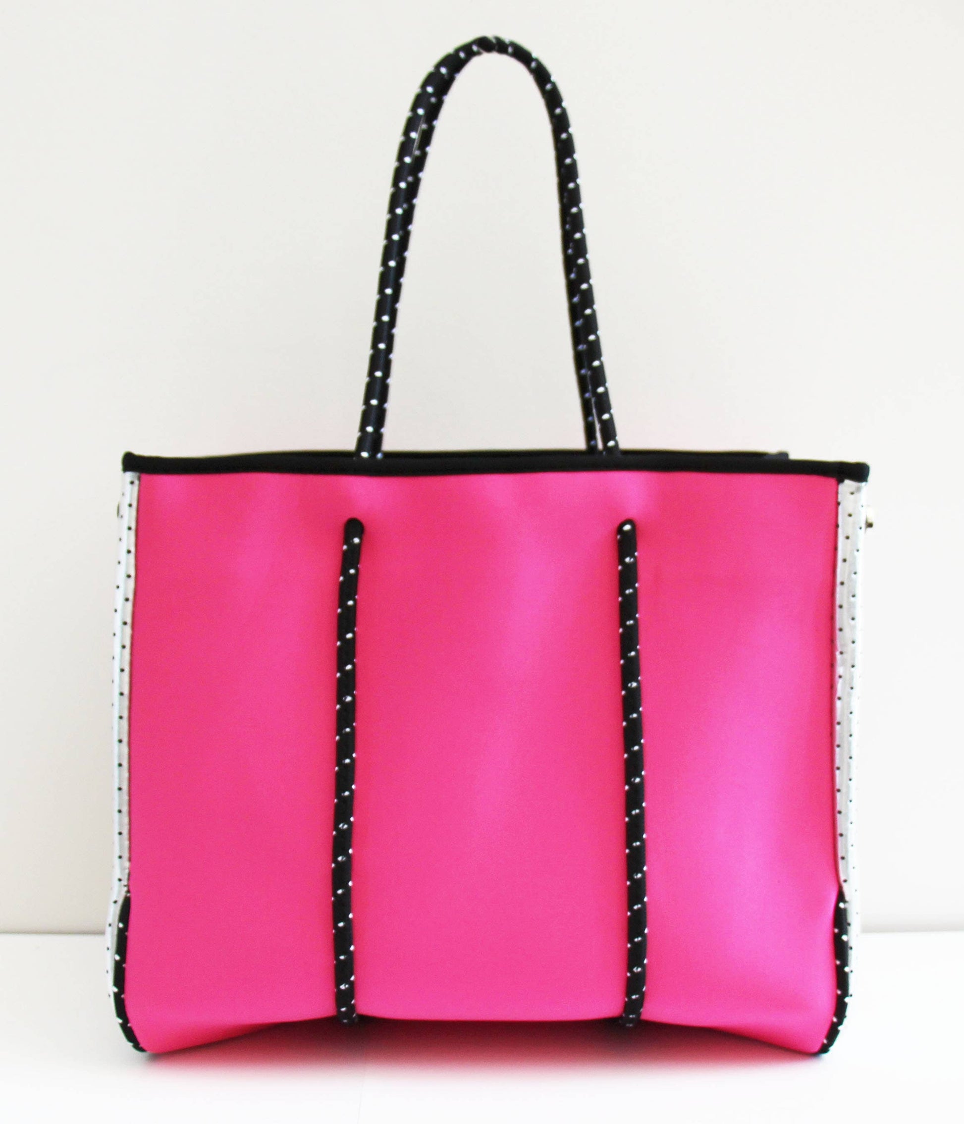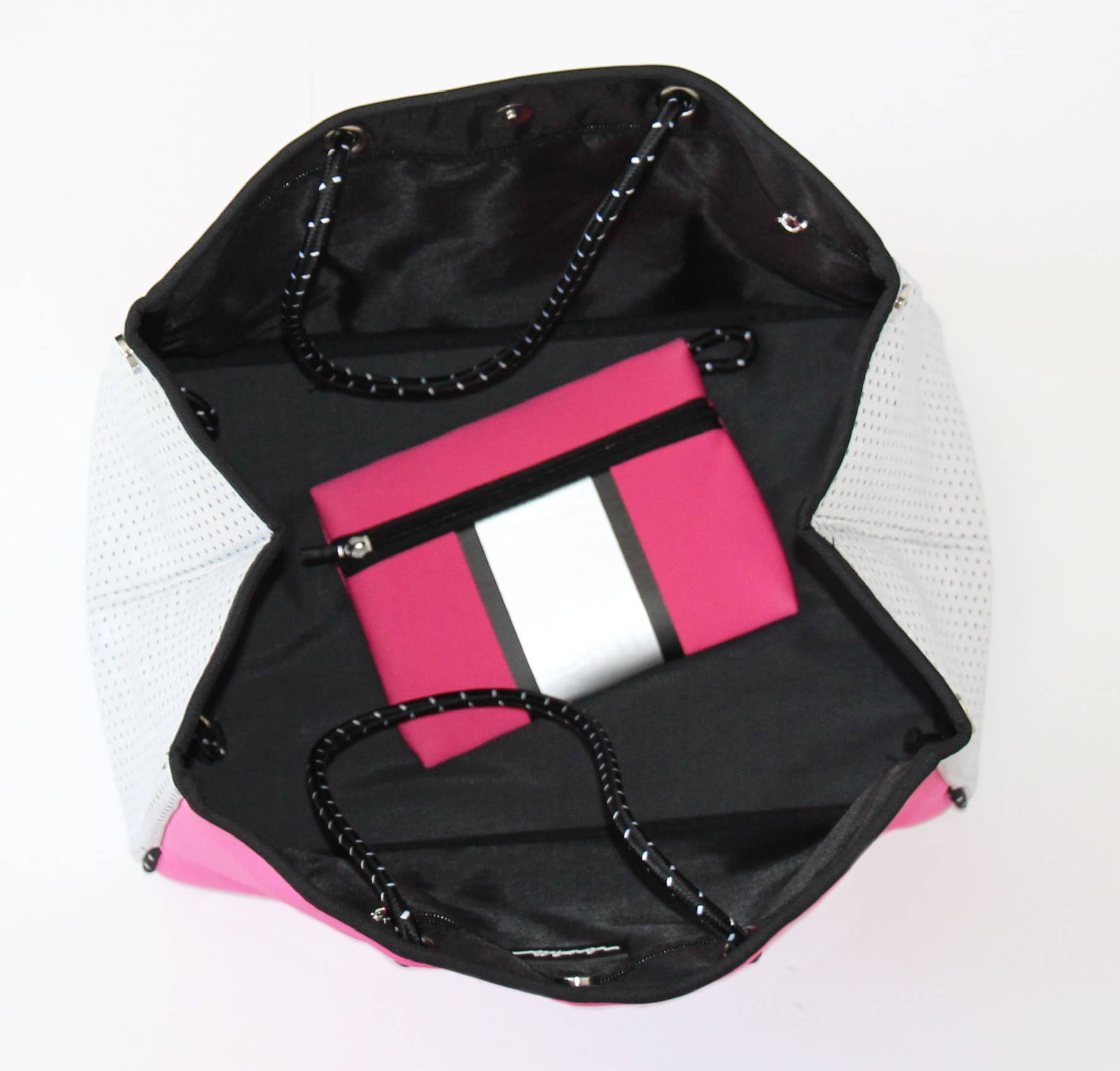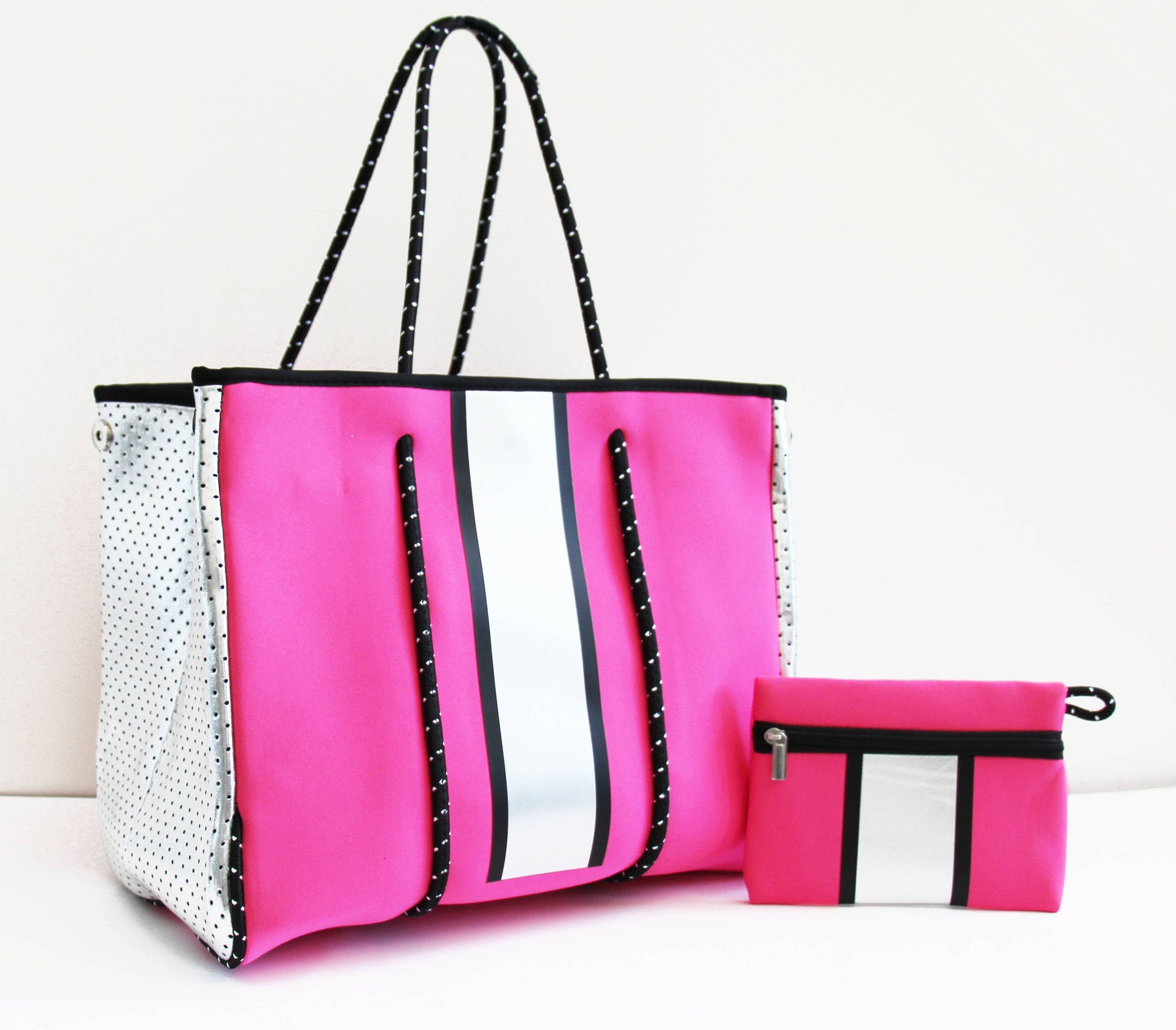 Our Newest Lemonbella signature Marin Tote is our favorite for spring and summer seasons that brings both fashion and functionality. Perfect for every occasion whether the gym, office, travel, beach, and everyday life. It is designed with style and durable neoprene fabric that is ultra lightweight, waterproof, and machine washable.*Matching detachable zippered clutch perfect for all your small items such as make up, credit cards, money.Care: Machine wash cold on gentle cycle with non harsh detergent. Lay flat or hang to dry.Dimensions: 14L x 9Wx 12HClutch: 5L x 8Wplease visit Lemon-Bella.com for more choices